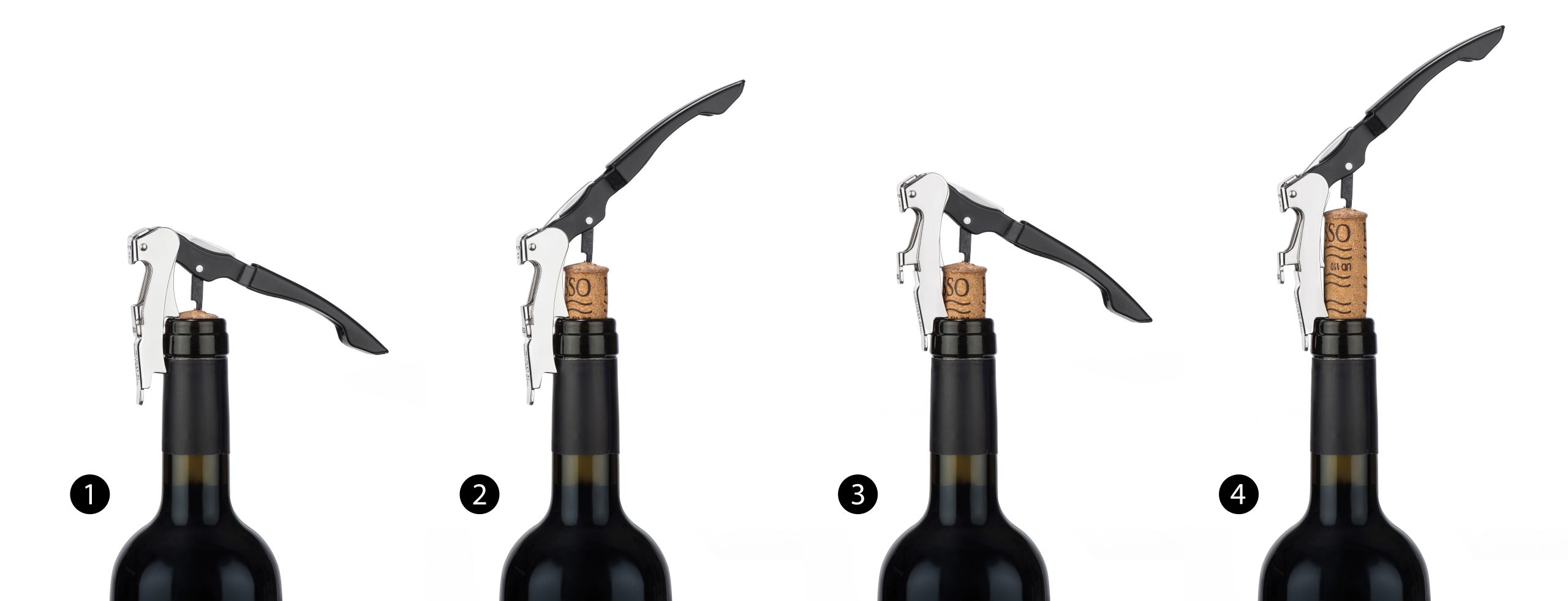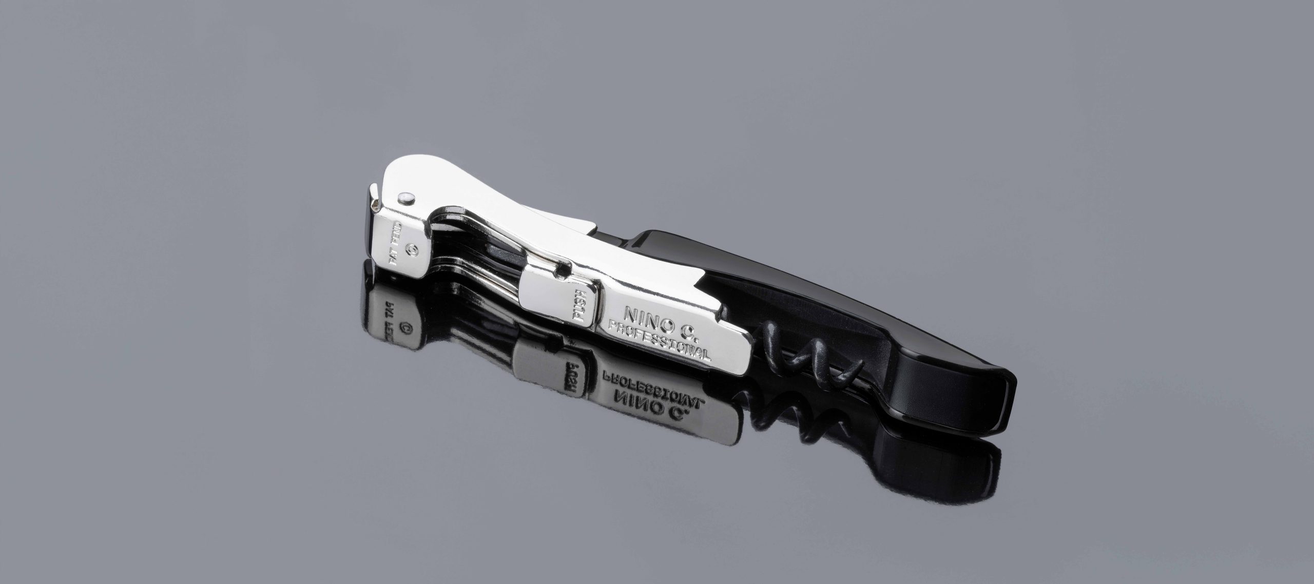 The professional two-stage wine opener Nino C. with a double lever allows for easy cork extraction without any annoying complications. Its ergonomic handle, Teflon spiral, and blade with automatic locking when opening the levers are just some of the excellent features that make this opener unique.