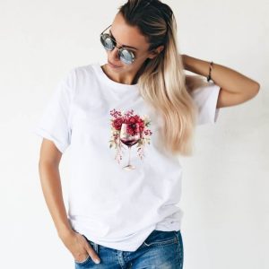 Vino in cvetje, ženska majica s čudovitim motivom.