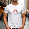 Vinski kozarci in steklenice ter srce, moška majica s kratkimi rokavi.